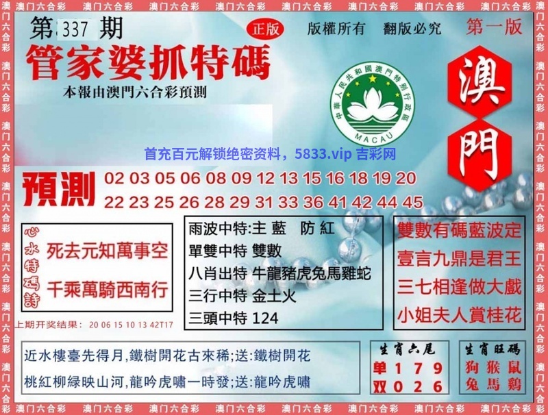 | 341期:🌴三头中特🌴【0-2-3头】开:鼠06中 |