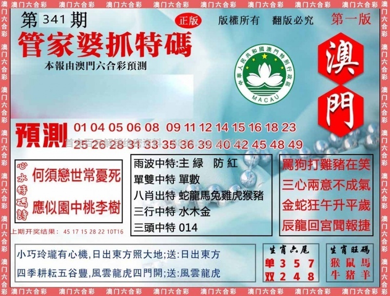 | 341期 | 2 3 7 8 尾 | 开鼠06 |